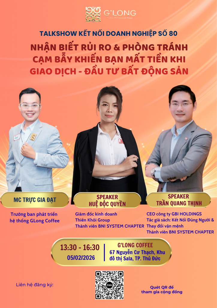 Thấu hiểu những trăn trở đó, G’LONG COFFEE trân trọng kính mời Quý Anh/Chị đến tham dự buổi chia sẻ chuyên sâu nhằm trang bị bộ lọc rủi ro sắc bén nhất trước khi tiến hành bất kỳ giao dịch nào.